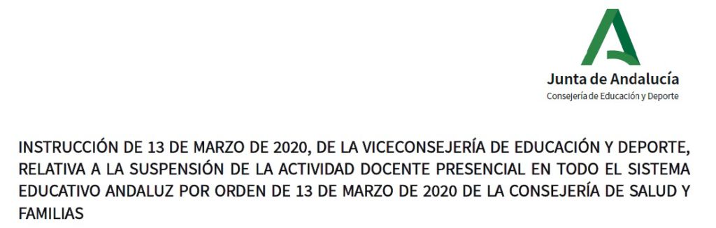 Tras la publicación de la instrucción de 13 de Marzo de 2020, relativa a la Suspensión de la Actividad Docente Presencial en todo el Sistema Educativo Andaluz, de la Viceconsejería de Educación , se han puesto en marcha las siguientes actuaciones: