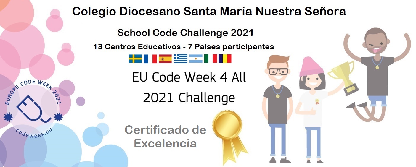 Hemos conseguido cumplir los dos criterios propuestos por la CodeWeek 2021 para su Certificado de Excelencia. Nos hemos reunido 13 centros organizadores de eventos CodeWeek y de 7 países distintos. ¡¡¡Genial!!!