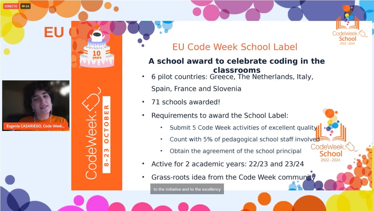 Sigue el evento en directo de presentación de los premiados de Code Week School Label