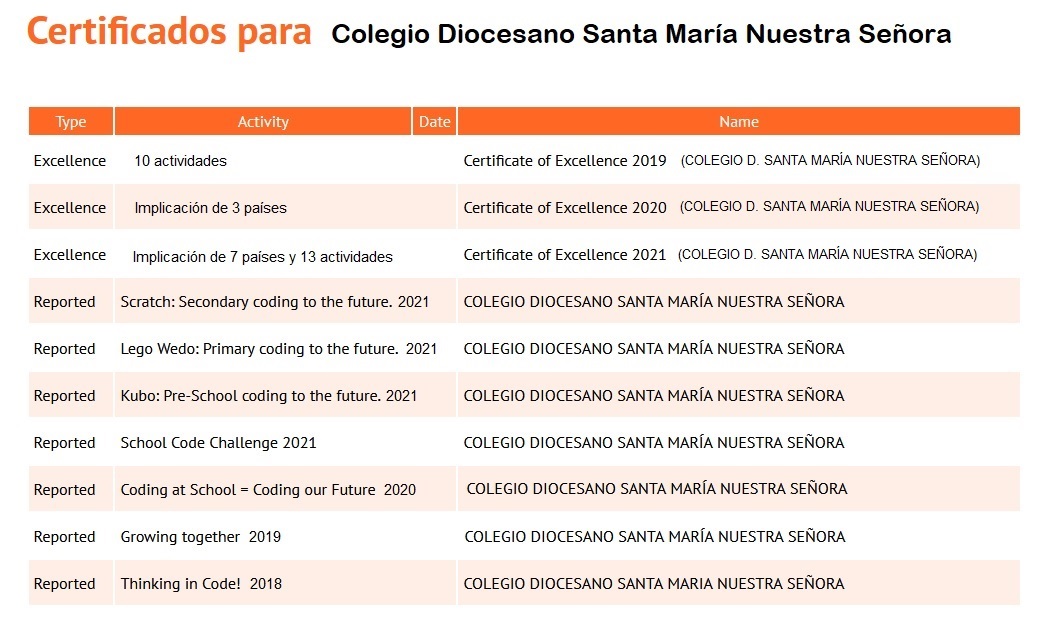 Desde 2018 estamos presentes en la CODEWEEK, la Semana de la Programación de la Unión Europea, que es una iniciativa que tiene como objetivo acercar la programación y el alfabetismo digital de una forma divertida e interesante. Y los tres últimos años 2019-2020-2021 con el reconocimiento de Certificado de Excelencia.