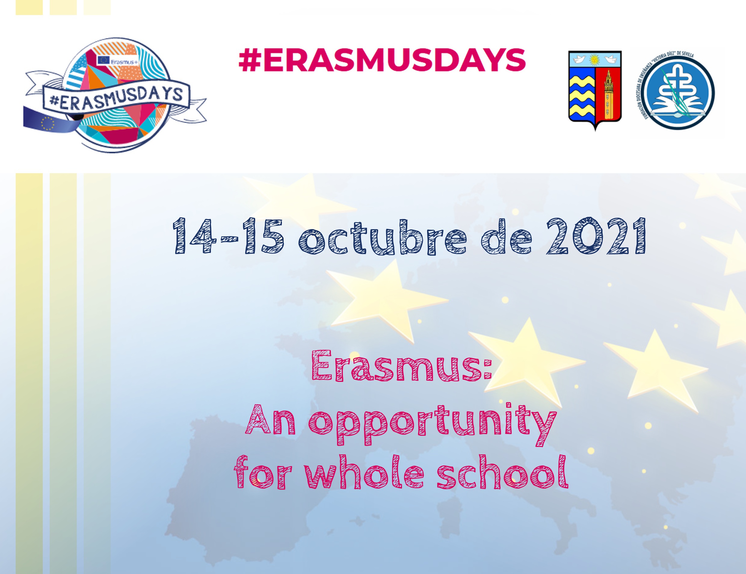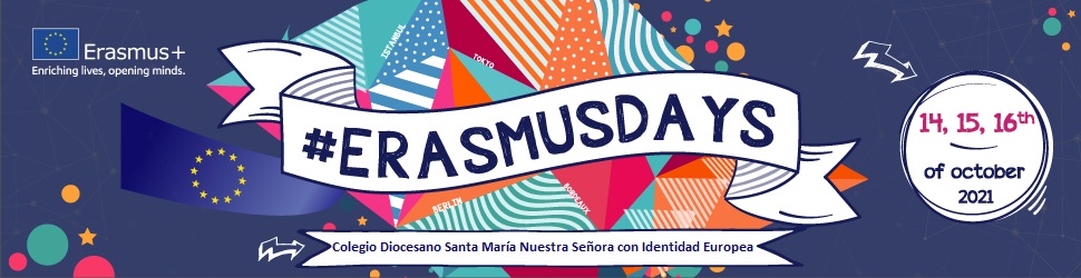 14 octubre, 2021 Erasmus Day´s 14-15 Octubre 2021 Colegio Diocesano Santa María Nuestra señora con identidad Europea Sesiones de promoción y divulgación de nuestros proyectos Erasmus. KA229 (19/20) y KA101 (21/22) Evento en el Mapa de Erasmus Day´s 2021 https://www.erasmusdays.eu/event/erasmus-an-opportunity-for-whole-school/