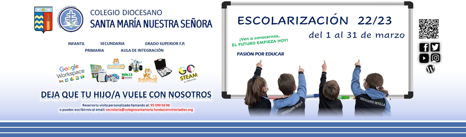 Para completar la matriculación pida cita previa llamando al teléfono: 95 590 56 96 o escriba al email secretaria@colegiosantamaria.diocesanossevilla.es