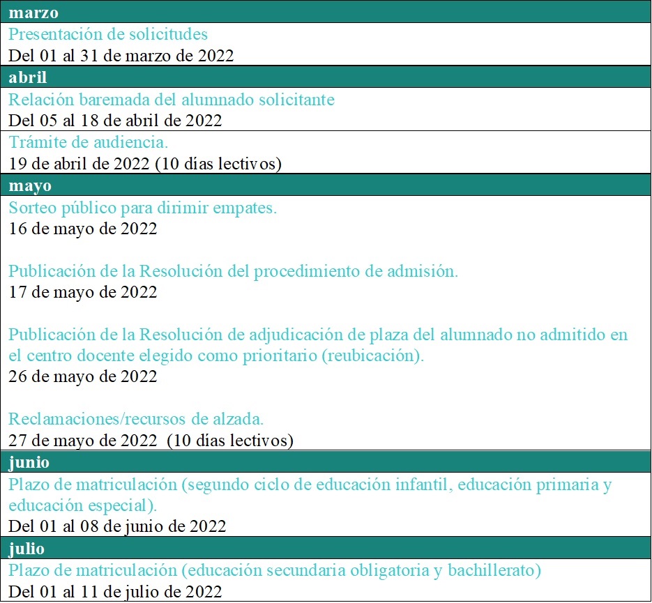 Web Junta de Andalucía Escolarización 22-23