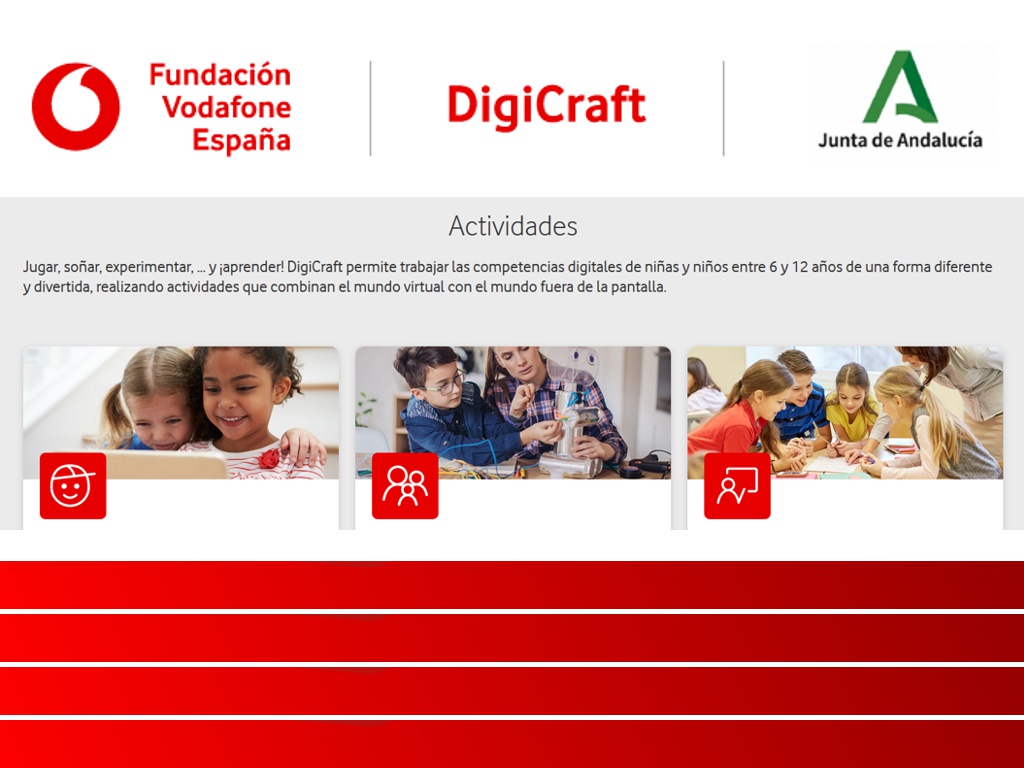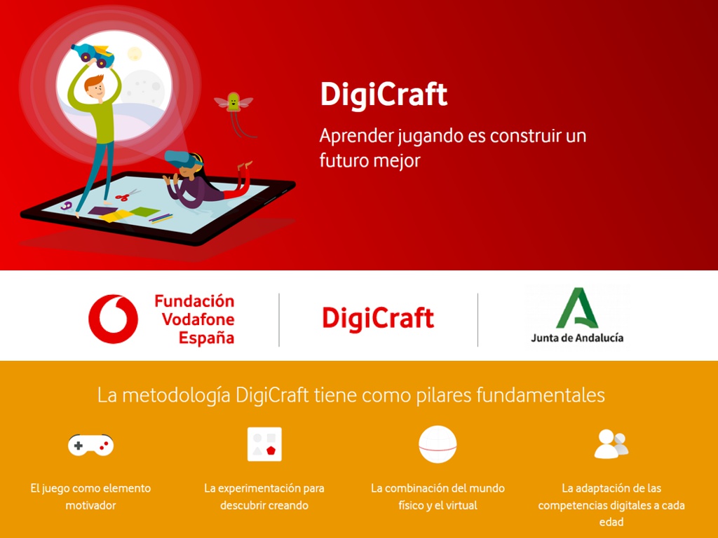 La Consejería de Educación y Deporte de la Junta de Andalucía y la Fundación Vodafone España presentan el proyecto DigiCraft en tu cole, consistente en la implementación del Programa DigiCraft en 100 centros sostenidos con fondos públicos de la Comunidad de Andalucía que impartan Educación Primaria, durante los cursos 2020-2021, 2021-2022 y 2022-2023.