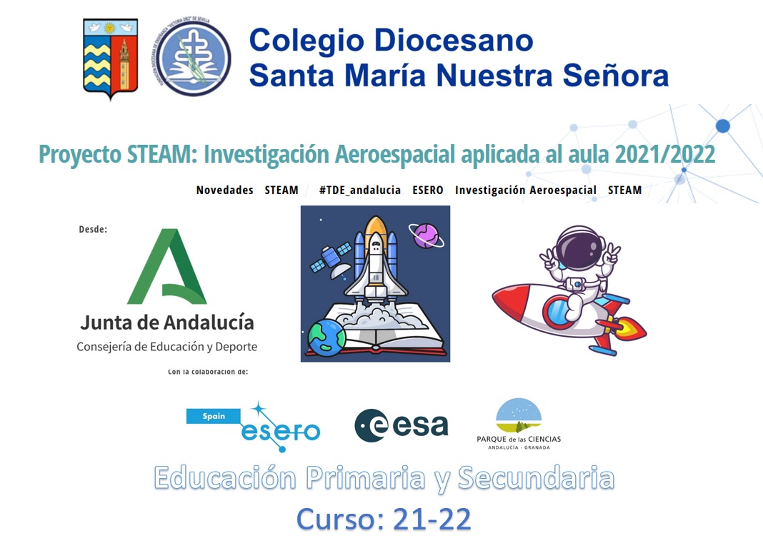 Nuestro Centro Educativo ha sido seleccionado para poder desarrollar el Proyecto Consejería de Educación Junta de Andalucía: Investigación Aeroespacial en el aula. Nivel I. Proyectos  interdisciplinares STEAM con la colaboración de ESA (Agencia Espacial Europea), ESERO (Oficina Europea de Recursos para la Educación Espacial en España) y el Parque de las Ciencias de Granada.