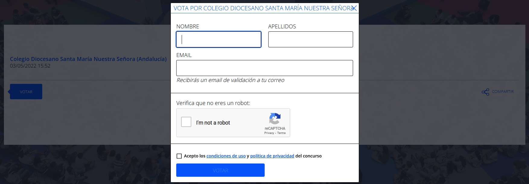 Pulsamos votar y completamos nuestros datos.